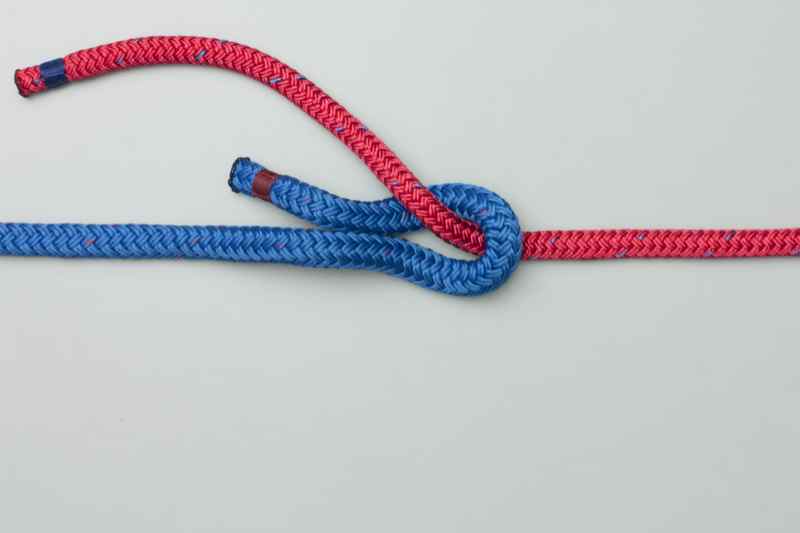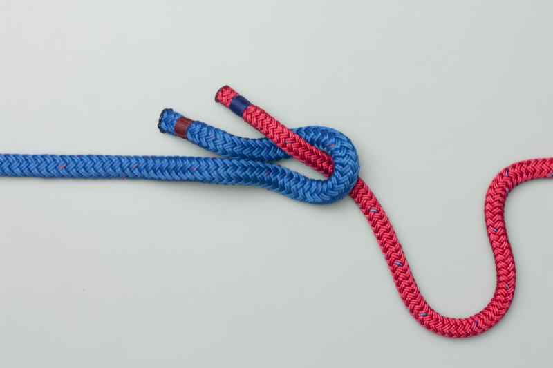 One rope forms a simple loop (the thicker or stiffer rope, if applicable), and the other rope is threaded through the loop, around the back, and tucked under itself. This creates a secure connection that tightens under tension. For added security, a Double Sheet Bend can be used by wrapping the tail around twice instead of once.